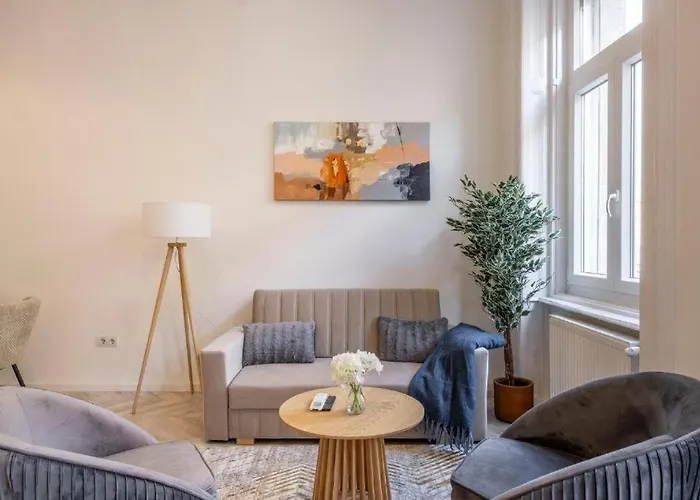 Az apartman a Hatszín Teátrumtól pár lépésre, a VI. körzetben található, Budapest közvetlen szívében. Az apartmantól csak 1,1 km-re a vendégek ellátogathatnak a Szabadság térhez. Továbbá a Hold utcai Vásárcsarnok és Belvárosi Piac csupán 9 percnyi sétára van.